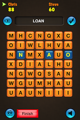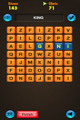 Create a word from last letter of previous word - A whole new type of word search game!!! Available as a single player or challenge a friend in 2 -player game play. Both play requires different strategy. In single player, make words that can help you make next word. In two player, make words that can make tough for your friend to make a word.